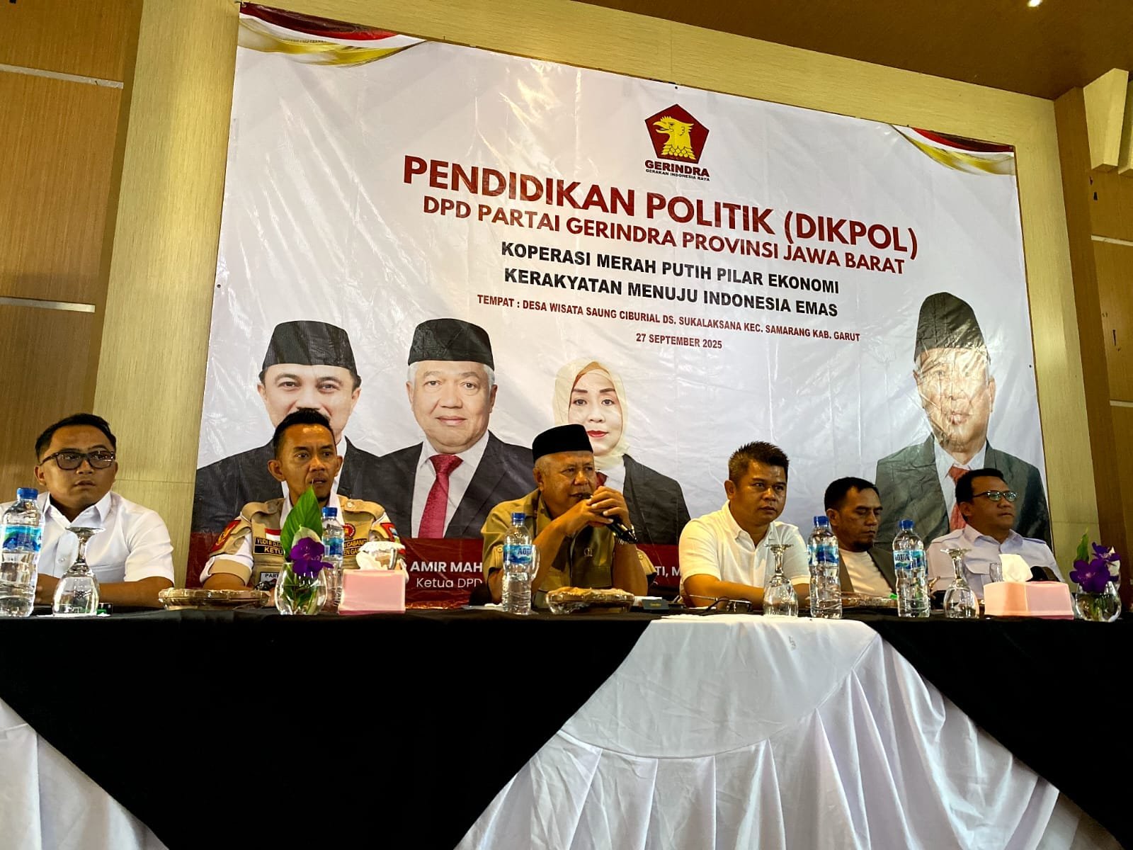 GARUT — Sabtu, 27/09/2025. H. Dede Kusdinar, S.E., Anggota DPRD Provinsi Jawa Barat dari Fraksi Partai Gerindra, menggelar Pendidikan Politik dengan tema “Koperasi Merah Putih Pilar Ekonomi Kerakyatan Menuju Indonesia Emas” di Desa Sukalaksana, Kampung Ciburial, Kabupaten Garut.