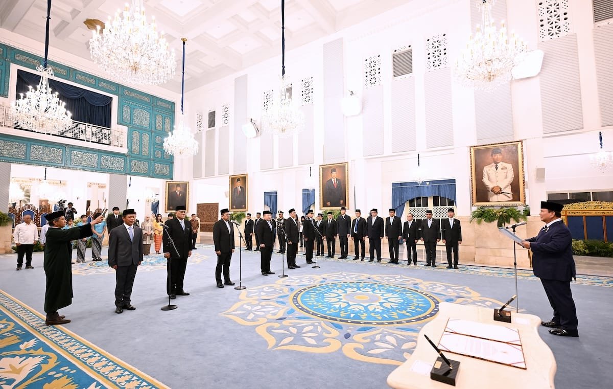 Dalam prosesi pelantikan, Prabowo Subianto memandu langsung pengucapan sumpah jabatan. Para pejabat menyatakan komitmen untuk setia kepada Undang-Undang Dasar 1945 dan menjalankan tugas dengan penuh tanggung jawab.